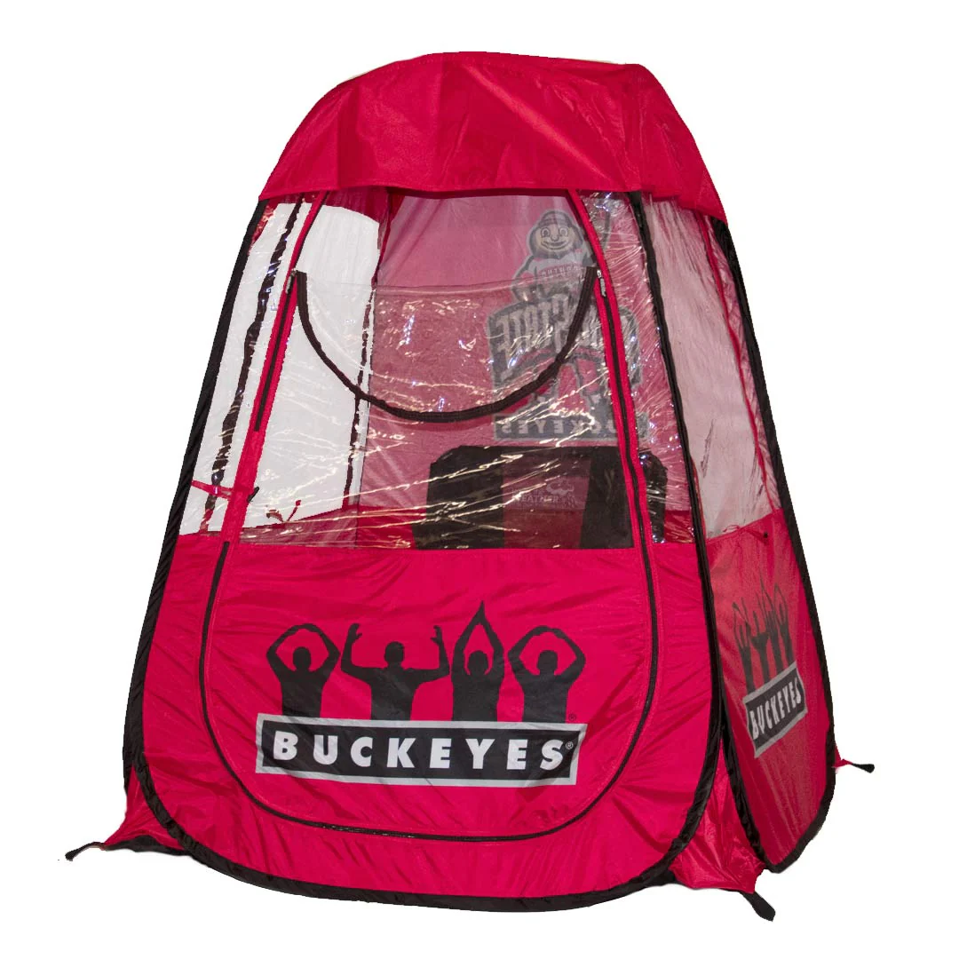 O-H-I-O! The officially-licensed Ohio State 1-person Pop-Up Pod puts Buckeye Nation front and center for all to see. Unlike canopy tents, the patented one-piece design with weather-resistant PVC panels zip fully closed, so you’re warm and comfy in all kinds of weather—no need to run for cover. Easy to tote, these Buckeye Pods pop open in seconds and fold just as quickly, no assembly required—so you can less time setting things up and more time getting your game on. Two color options with bold graphics.