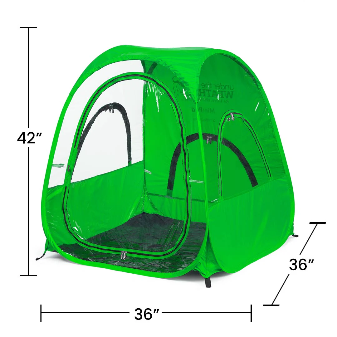 Compact but packed with enough space to be a versatile addition for maximizing any outdoor fun. Our MiniPod® Deluxe 36 x 36 Pop-Up Pod is a perfect take-along for everything from giving small kids and pets a place to play/rest or simply a secure spot to keep your supplies safe from outdoor elements. Take it to a picnic to give the kids a place for some shade or a bug-free place to eat. Give your littlest fan their own place to cheer on the home team away from UV rays. The family dog can have their own space to stay dry when it starts to drizzle at the dog park. Made from clear plastic walls and a tapered fabric roof and trim, you’ll be able to keep an eye on your little ones or keep quick inventory of your supplies. Accessible through a handy zippered door, so kids and pets can easily get in and out while staying in the action (or taking a needed nap). Pops up in seconds and folds flat. This is the perfect add-on to other WeatherPod products or a simple and handy way to keep the weather from ruining your outdoor fun.